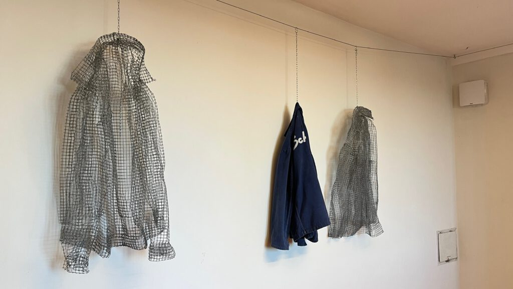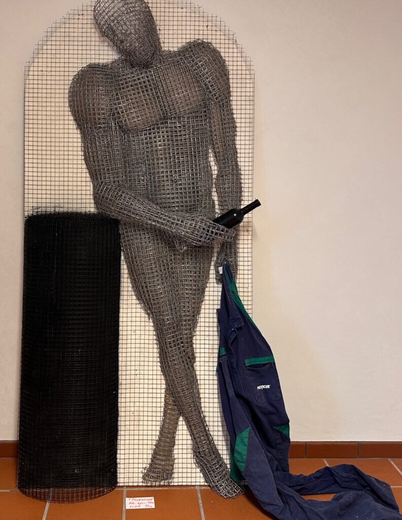 Überlebensgroße Figuren aus Maschendraht gebogen aber auch aus Papier geformt.