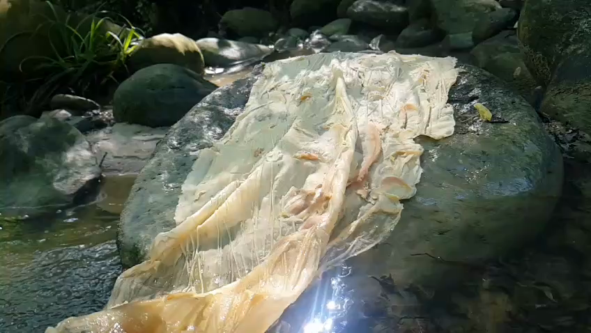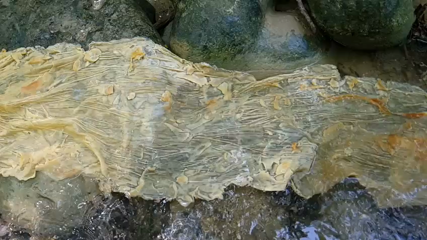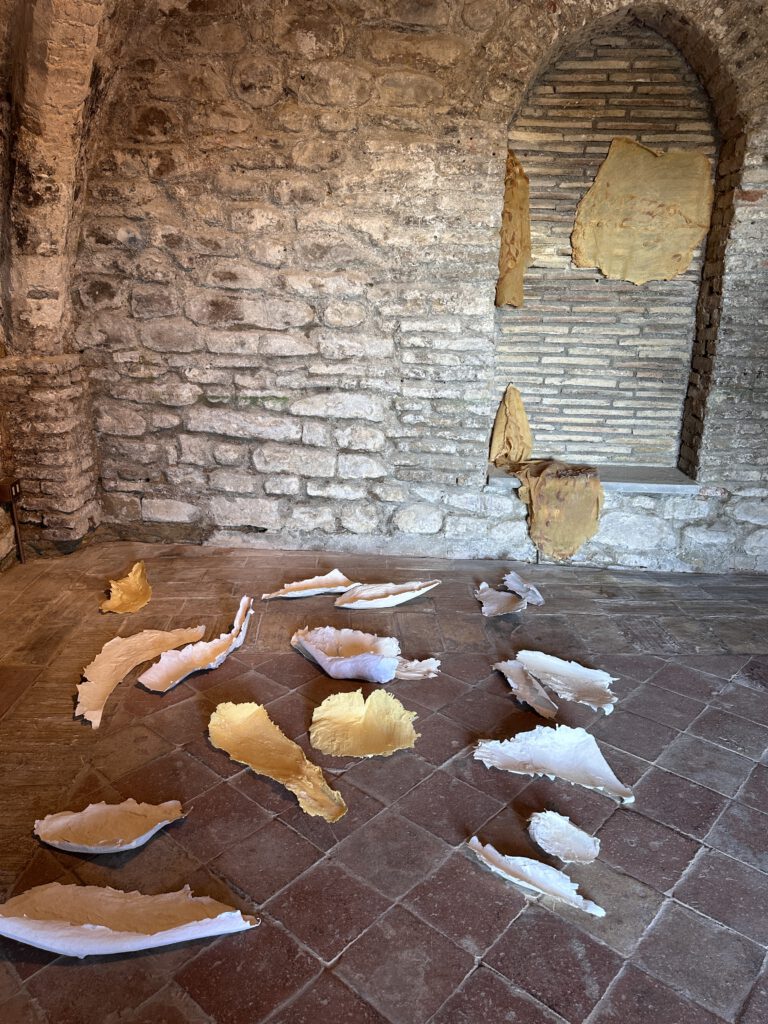 Jessica Pintaldi zeigt Hautkopien aus der Natur. Sie arbeitet auf Naturmaterialien und Wasser mit Silikon und Gips.